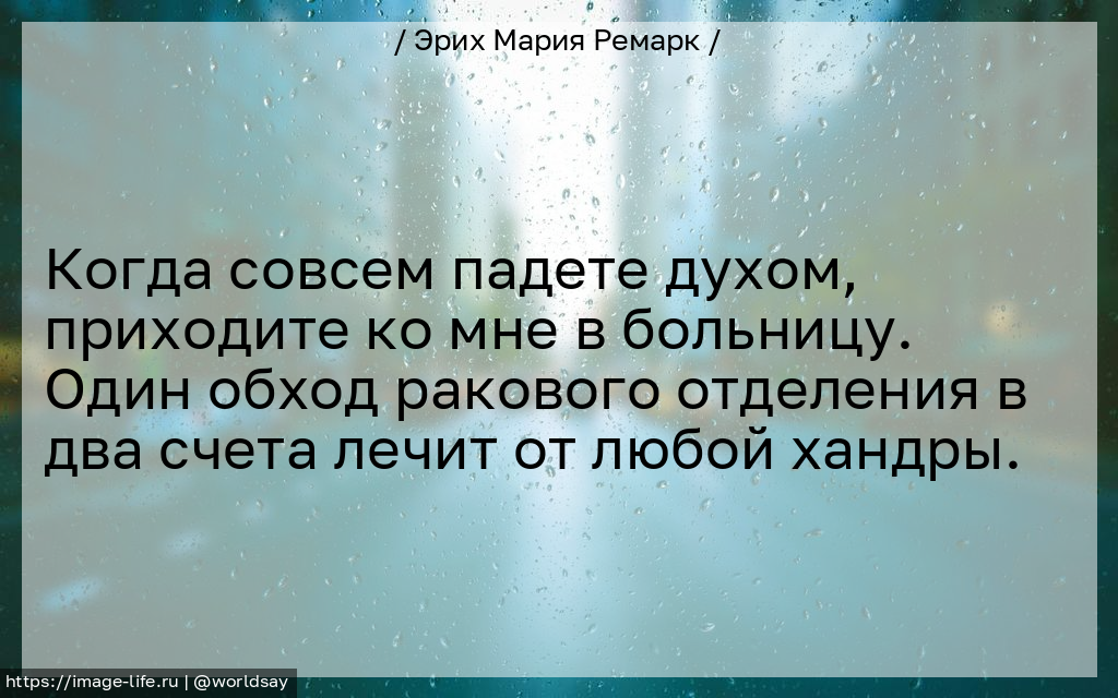 Когда совсем падете духом, приходите ко мне в больницу. Один обход ракового отделения в два счета лечит от любой хандры.