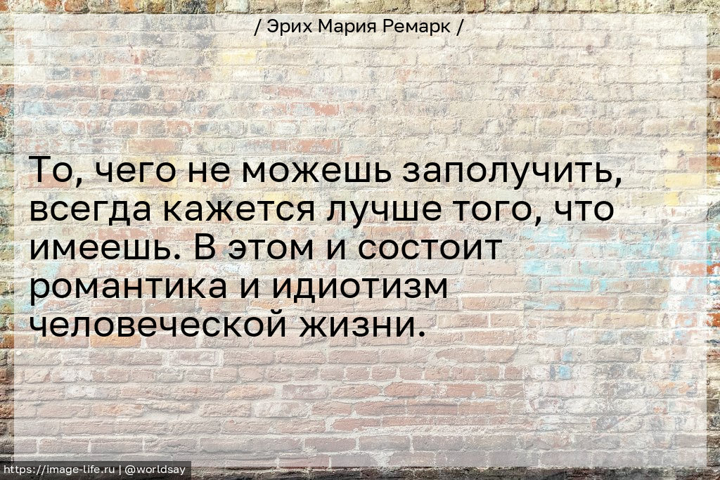 То, чего не можешь заполучить, всегда кажется лучше того, что имеешь. В этом и состоит романтика и идиотизм человеческой жизни.