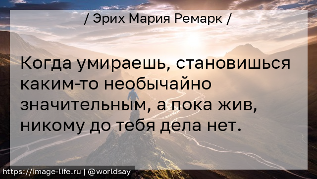 Когда умираешь, становишься каким-то необычайно значительным, а пока жив, никому до тебя дела нет.