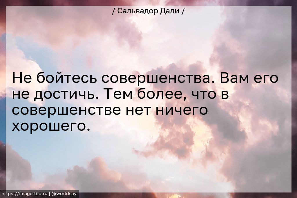 Не бойтесь совершенства. Вам его не достичь. Тем более, что в совершенстве нет ничего хорошего.