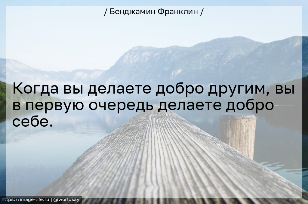 Когда вы делаете добро другим, вы в первую очередь делаете добро себе.