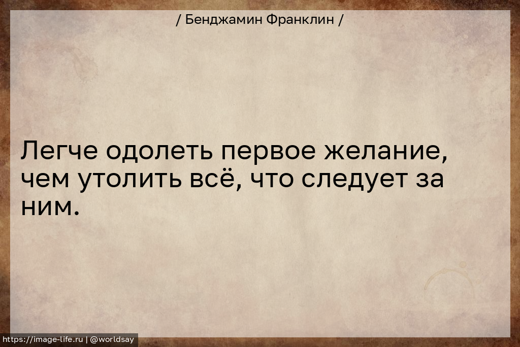Легче одолеть первое желание, чем утолить всё, что следует за ним.