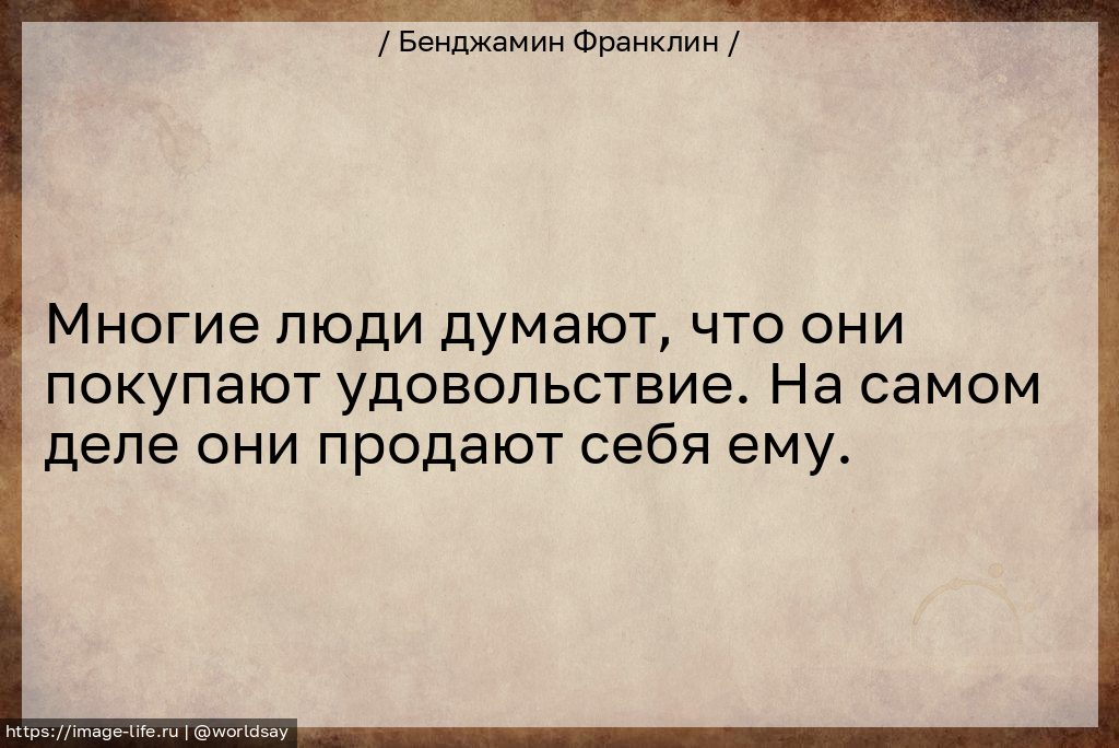 Многие люди думают, что они покупают удовольствие. На самом деле они продают себя ему.