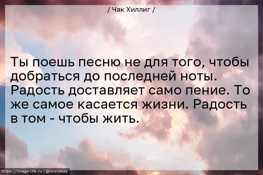 Ты поешь песню не для того, чтобы добраться до последней ноты. Радость доставляет само пение. То же самое касается жизни. Радость в том - чтобы жить.