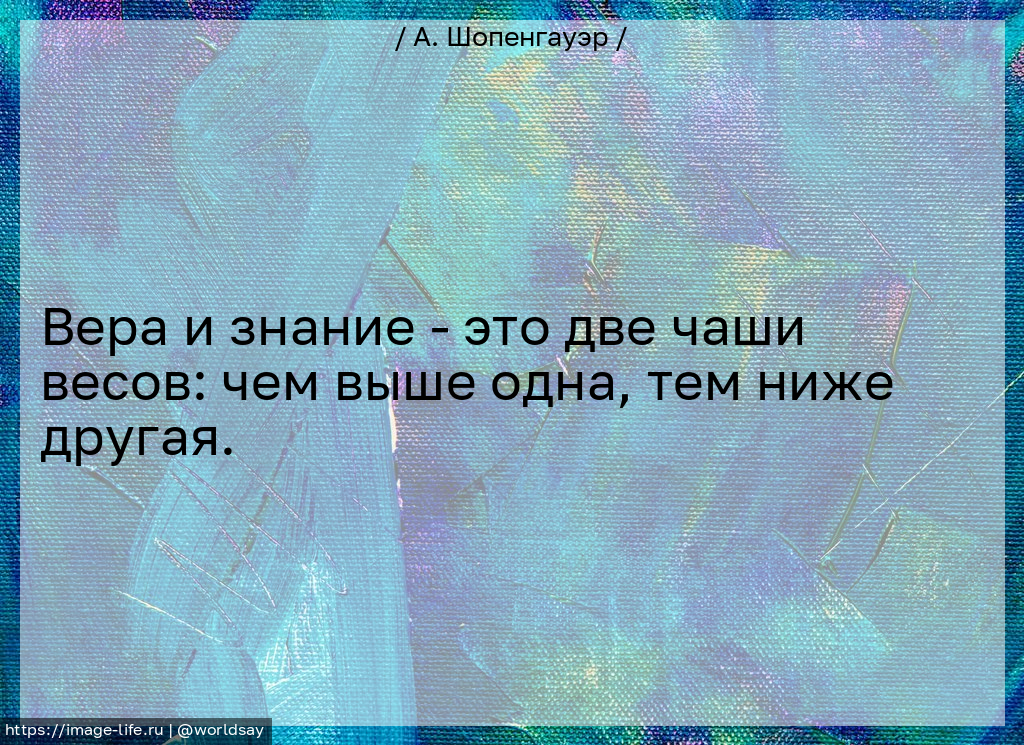 Вера и знание - это две чаши весов: чем выше одна, тем ниже другая.
