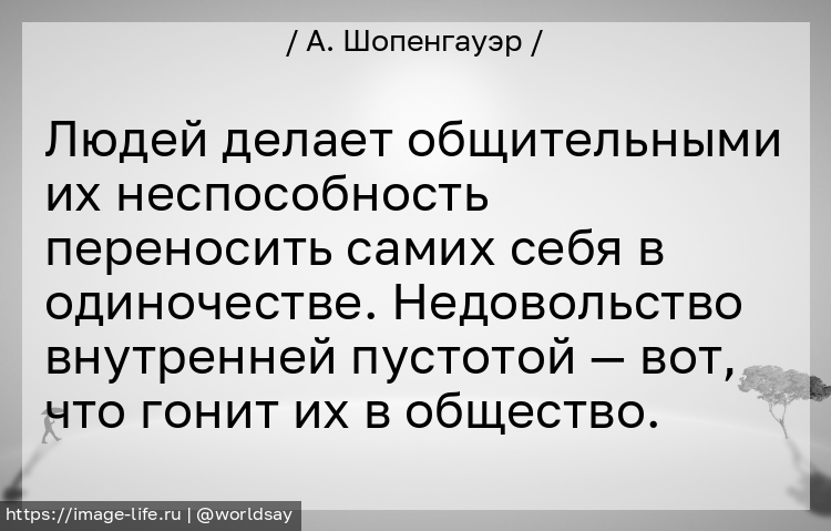 Людей делает общительными их неспособность переносить самих себя в одиночестве. Недовольство внутренней пустотой — вот, что гонит их в общество.
