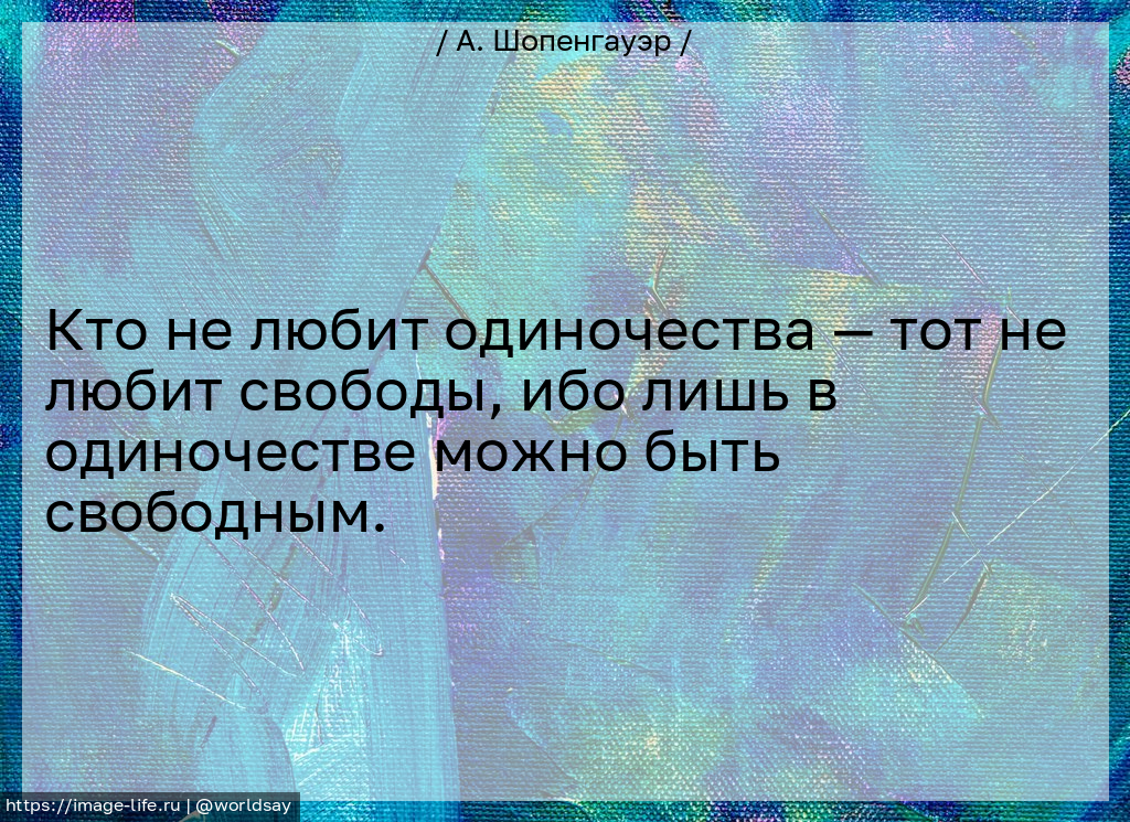 Кто не любит одиночества — тот не любит свободы, ибо лишь в одиночестве можно быть свободным.