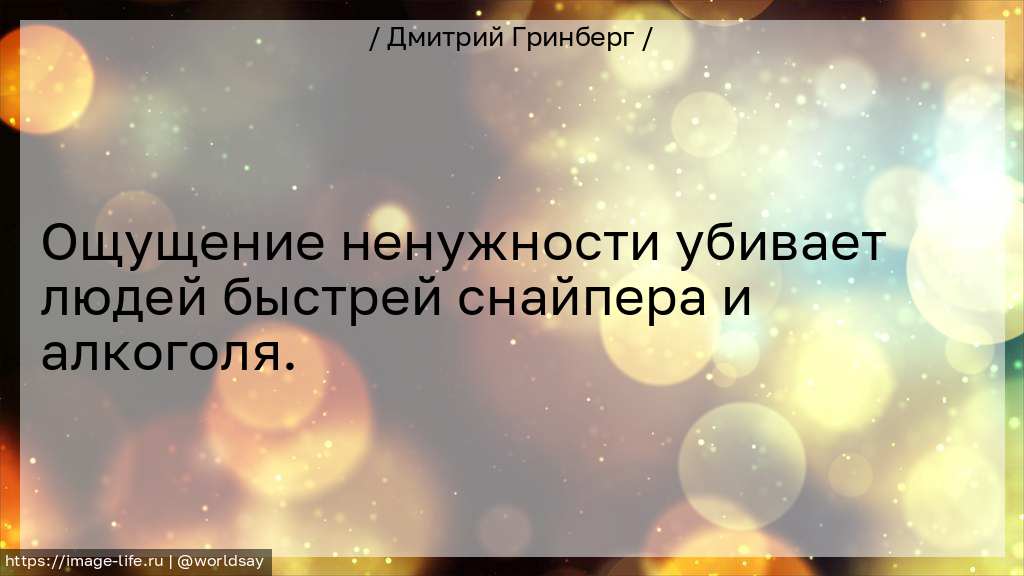 Ощущение ненужности убивает людей быстрей снайпера и алкоголя.