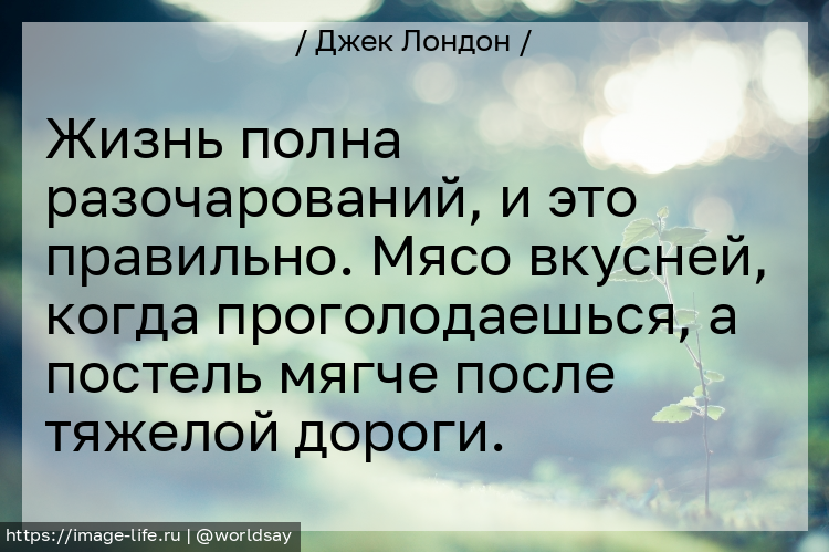 Жизнь полна разочарований, и это правильно. Мясо вкусней, когда проголодаешься, а постель мягче после тяжелой дороги.