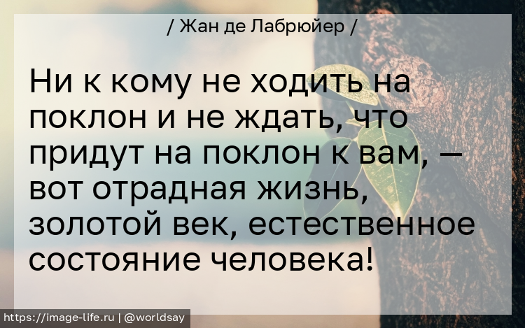 Ни к кому не ходить на поклон и не ждать, что придут на поклон к вам, — вот отрадная жизнь, золотой век, естественное состояние человека!