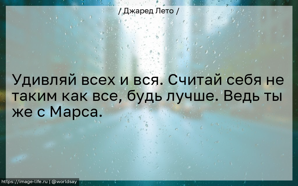 Удивляй всех и вся. Считай себя не таким как все, будь лучше. Ведь ты же с Марса.