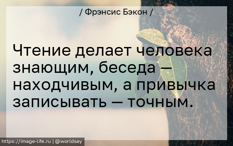 Чтение делает человека знающим, беседа — находчивым, а привычка записывать — точным.