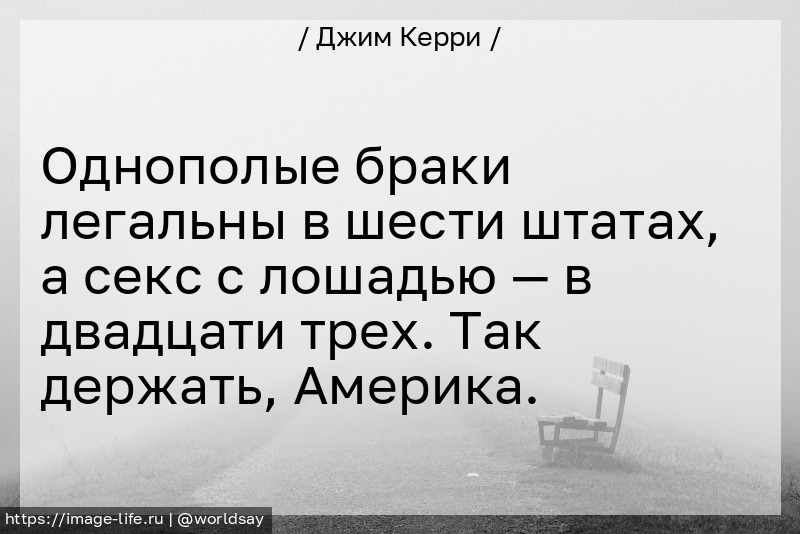 Однополые браки легальны в шести штатах, а секс с лошадью — в двадцати трех. Так держать, Америка.