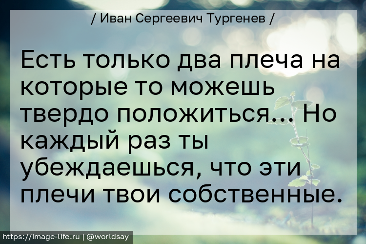 Есть только два плеча на которые то можешь твердо положиться… Но каждый раз ты убеждаешься, что эти плечи твои собственные.