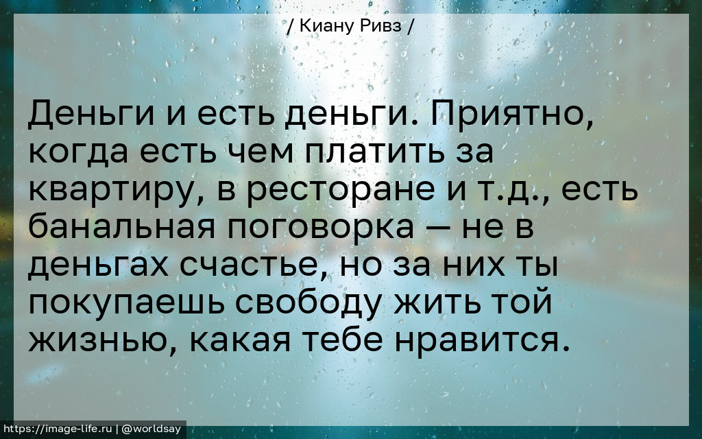 Деньги и есть деньги. Приятно, когда есть чем платить за квартиру, в ресторане и т.д., есть банальная поговорка — не в деньгах счастье, но за них ты покупаешь свободу жить той жизнью, какая тебе нравится.