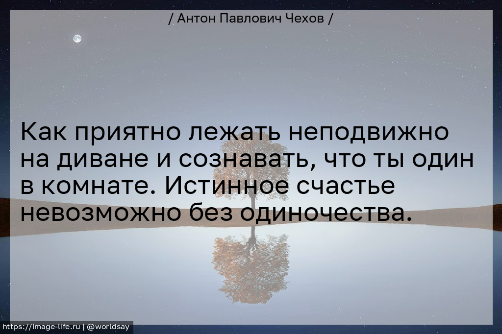 Как приятно лежать неподвижно на диване и сознавать, что ты один в комнате. Истинное счастье невозможно без одиночества.