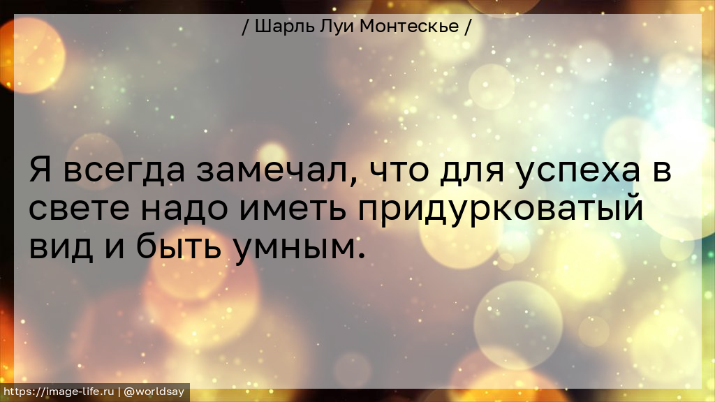 Я всегда замечал, что для успеха в свете надо иметь придурковатый вид и быть умным.