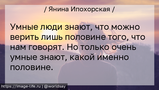 Умные люди знают, что можно верить лишь половине того, что нам говорят. Но только очень умные знают, какой именно половине.