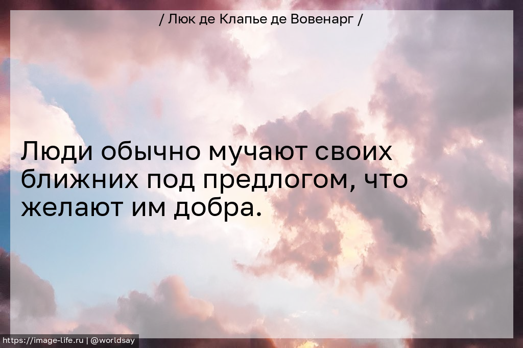 Люди обычно мучают своих ближних под предлогом, что желают им добра.