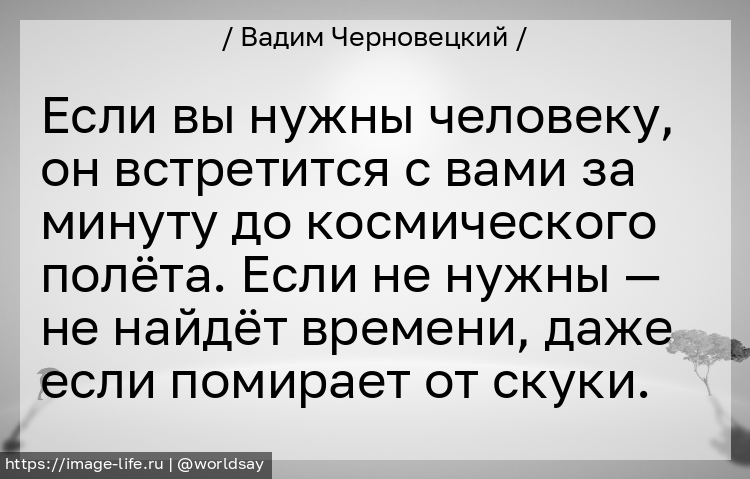 Если вы нужны человеку, он встретится с вами за минуту до космического полёта. Если не нужны — не найдёт времени, даже если помирает от скуки.