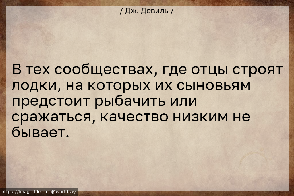 В тех сообществах, где отцы строят лодки, на которых их сыновьям предстоит рыбачить или сражаться, качество низким не бывает.