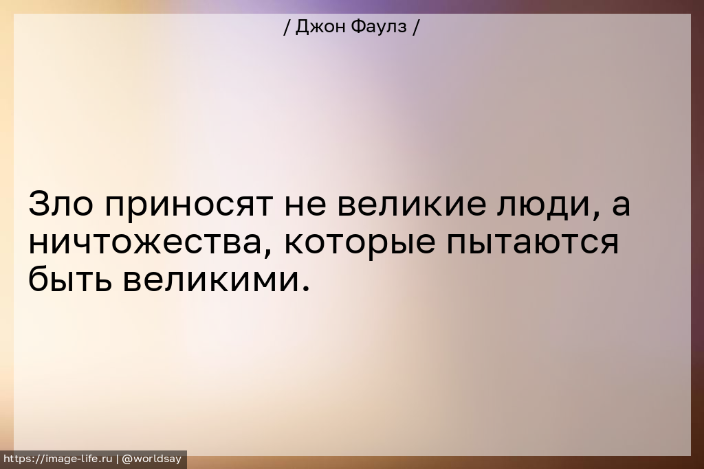 Зло приносят не великие люди, а ничтожества, которые пытаются быть великими.