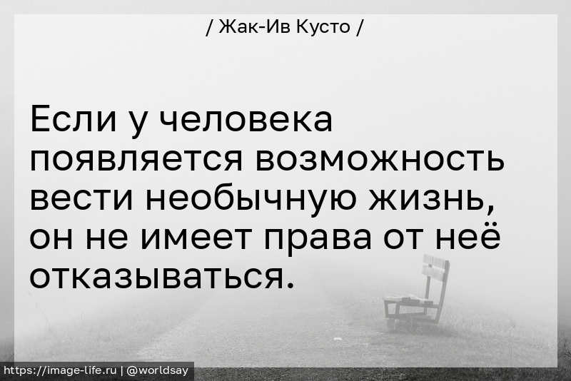 Если у человека появляется возможность вести необычную жизнь, он не имеет права от неё отказываться.