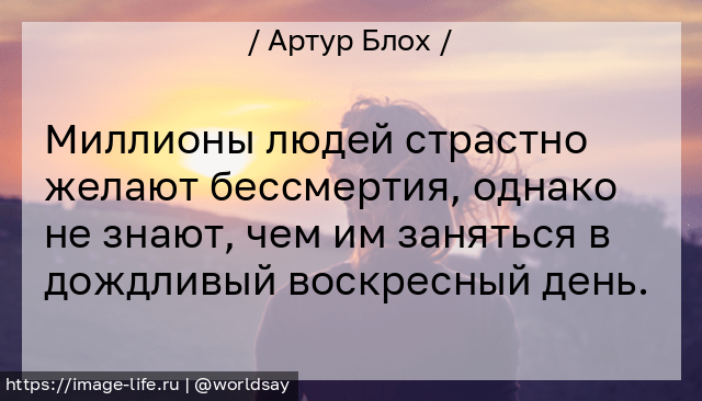Миллионы людей страстно желают бессмертия, однако не знают, чем им заняться в дождливый воскресный день.