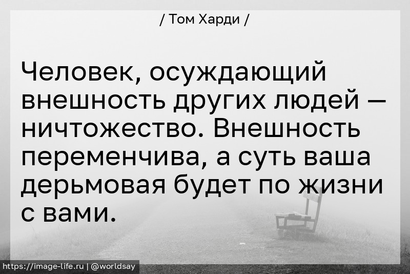 Человек, осуждающий внешность других людей — ничтожество. Внешность переменчива, а суть ваша дерьмовая будет по жизни с вами.