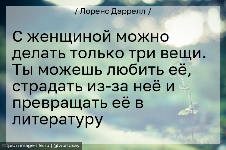 С женщиной можно делать только три вещи. Ты можешь любить её, страдать из-за неё и превращать её в литературу