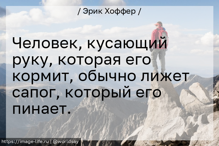 Человек, кусающий руку, которая его кормит, обычно лижет сапог, который его пинает.