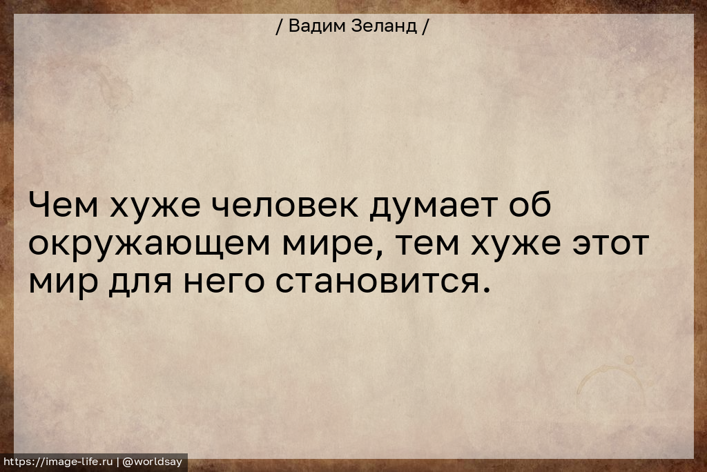 Чем хуже человек думает об окружающем мире, тем хуже этот мир для него становится.