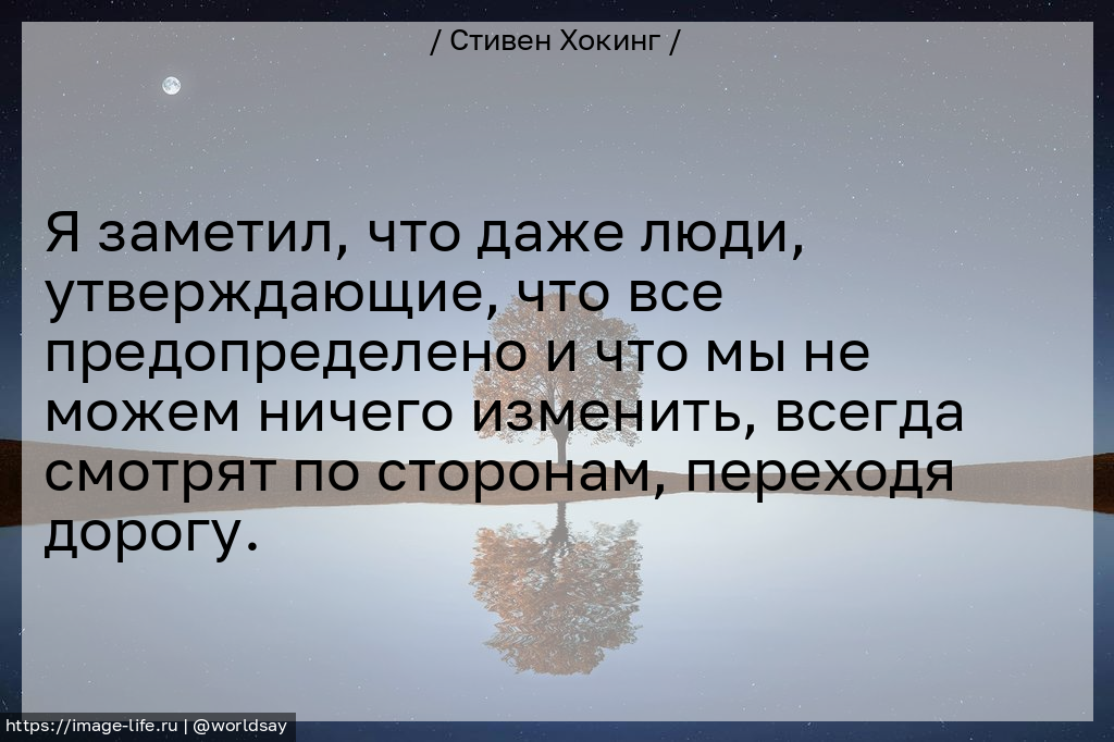 Я заметил, что даже люди, утверждающие, что все предопределено и что мы не можем ничего изменить, всегда смотрят по сторонам, переходя дорогу.