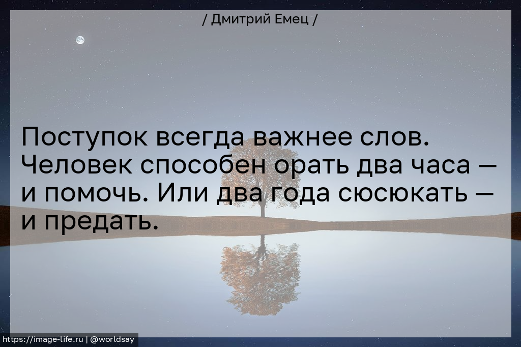 Поступок всегда важнее слов. Человек способен орать два часа — и помочь. Или два года сюсюкать — и предать.