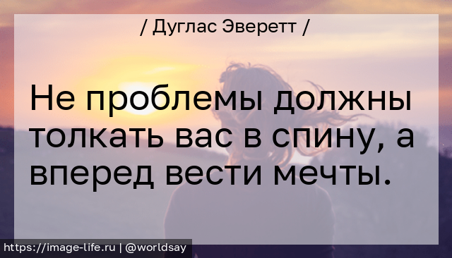 Не проблемы должны толкать вас в спину, а вперед вести мечты.