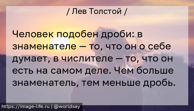 Человек подобен дроби: в знаменателе — то, что он о себе думает, в числителе — то, что он есть на самом деле. Чем больше знаменатель, тем меньше дробь.