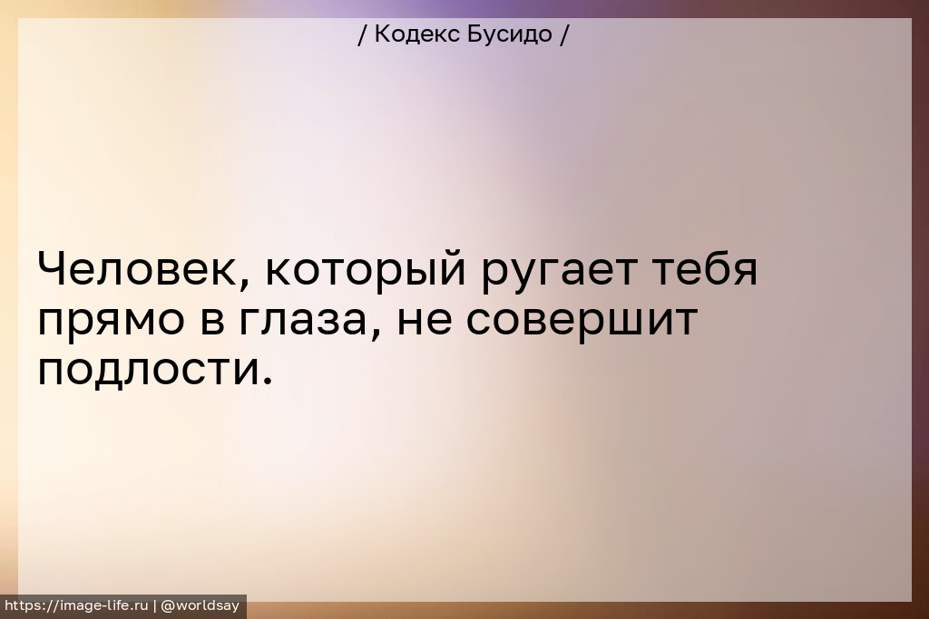 Человек, который ругает тебя прямо в глаза, не совершит подлости.