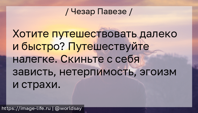 Хотите путешествовать далеко и быстро? Путешествуйте налегке. Скиньте с себя зависть, нетерпимость, эгоизм и страхи.