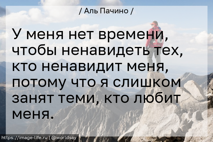 У меня нет времени, чтобы ненавидеть тех, кто ненавидит меня, потому что я слишком занят теми, кто любит меня.