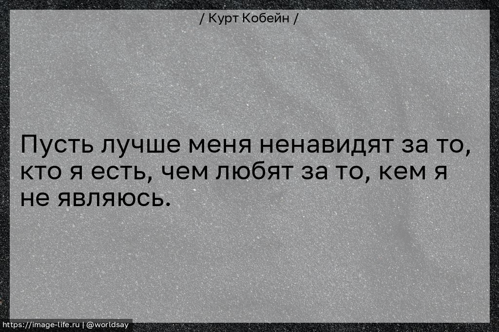 Пусть лучше меня ненавидят за то, кто я есть, чем любят за то, кем я не являюсь.
