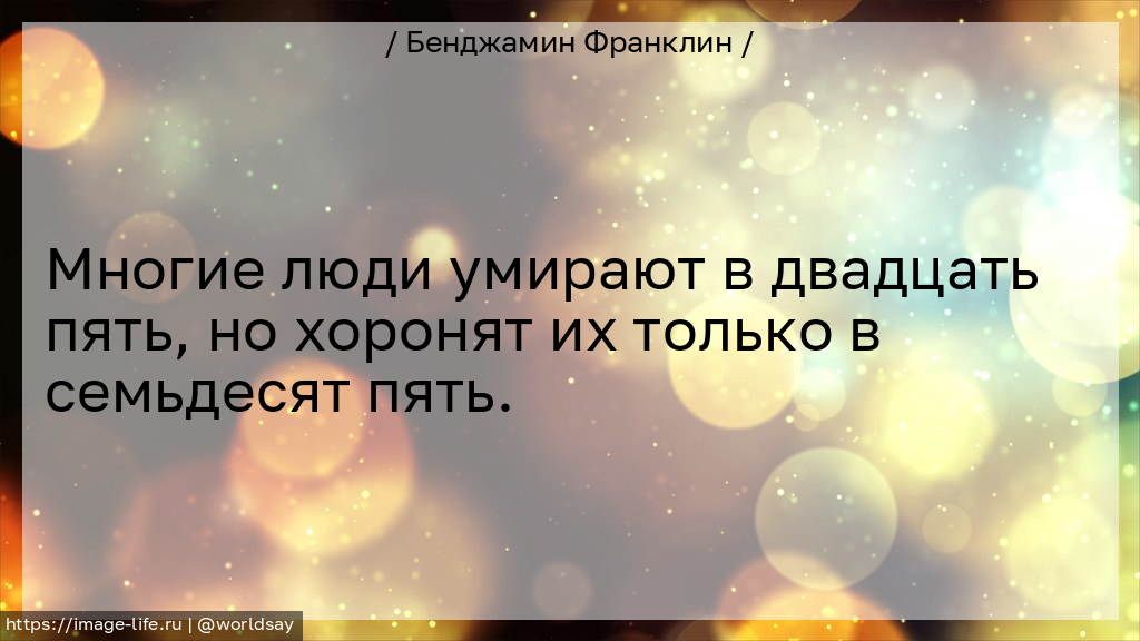 Многие люди умирают в двадцать пять, но хоронят их только в семьдесят пять.