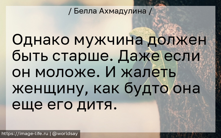 Однако мужчина должен быть старше. Даже если он моложе. И жалеть женщину, как будто она еще его дитя.