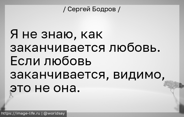 Я не знаю, как заканчивается любовь. Если любовь заканчивается, видимо, это не она.