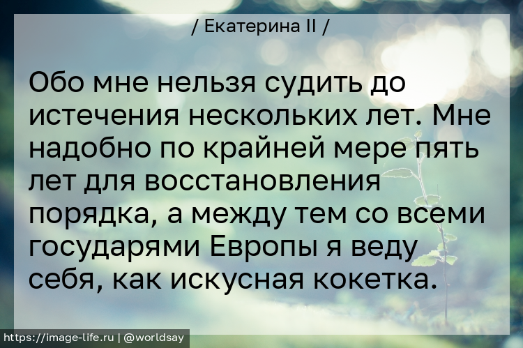 Обо мне нельзя судить до истечения нескольких лет. Мне надобно по крайней мере пять лет для восстановления порядка, а между тем со всеми государями Европы я веду себя, как искусная кокетка.