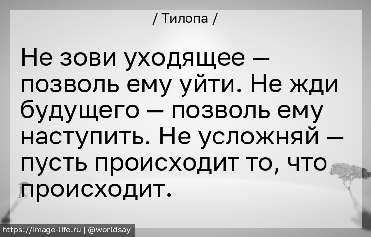 Не зови уходящее — позволь ему уйти. Не жди будущего — позволь ему наступить. Не усложняй — пусть происходит то, что происходит.