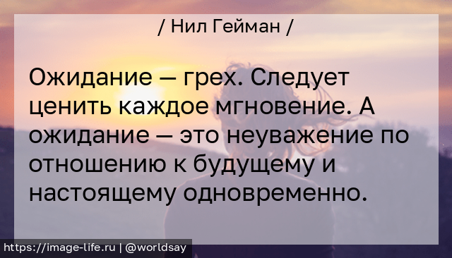 Ожидание — грех. Следует ценить каждое мгновение. А ожидание — это неуважение по отношению к будущему и настоящему одновременно.