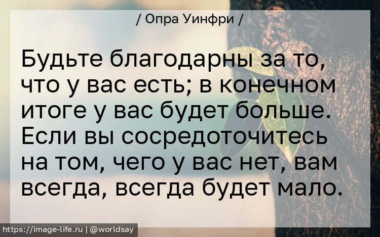 Будьте благодарны за то, что у вас есть; в конечном итоге у вас будет больше. Если вы сосредоточитесь на том, чего у вас нет, вам всегда, всегда будет мало.