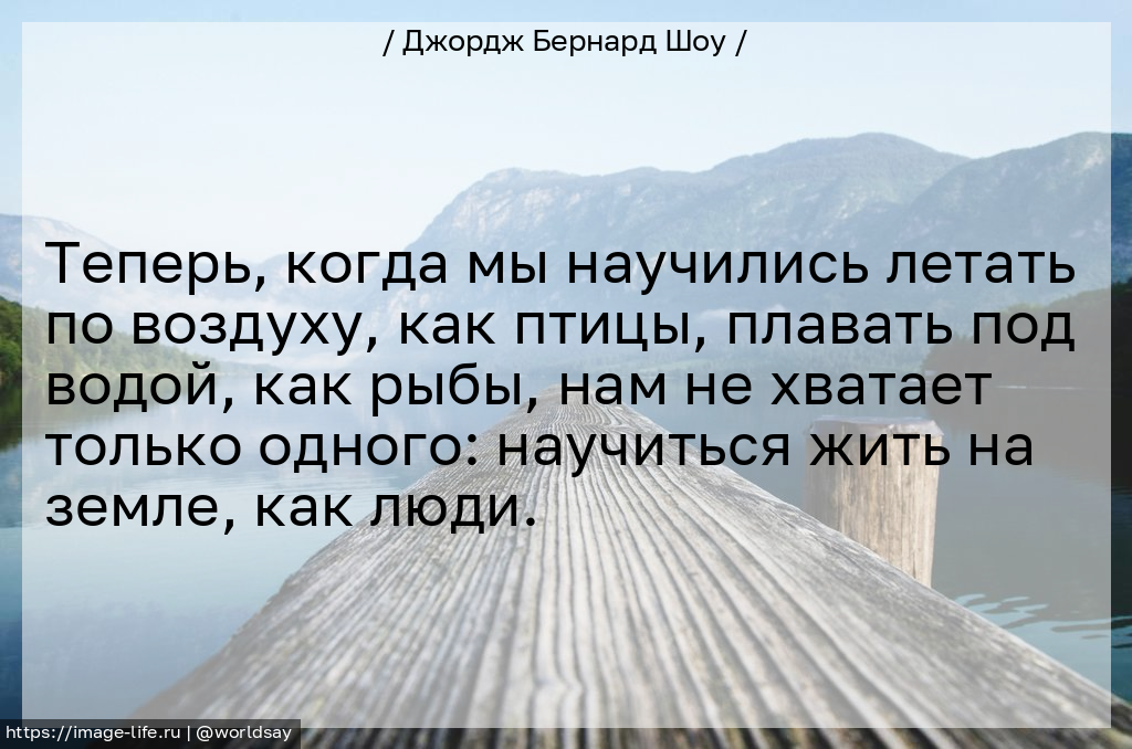 Теперь, когда мы научились летать по воздуху, как птицы, плавать под водой, как рыбы, нам не хватает только одного: научиться жить на земле, как люди.