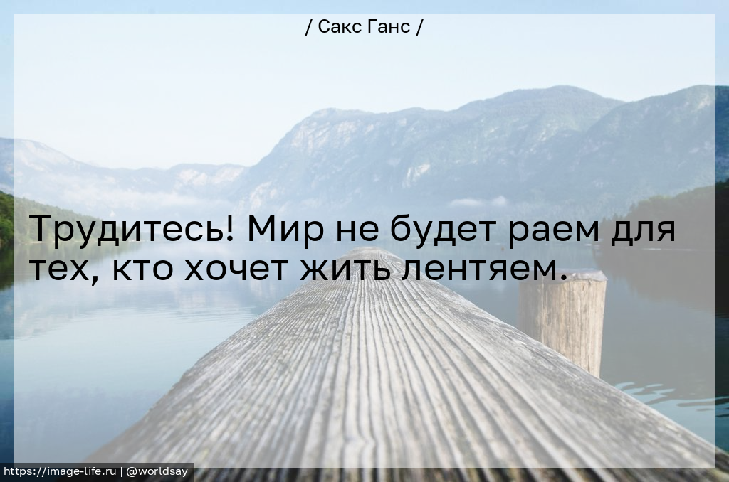 Трудитесь! Мир не будет раем для тех, кто хочет жить лентяем.