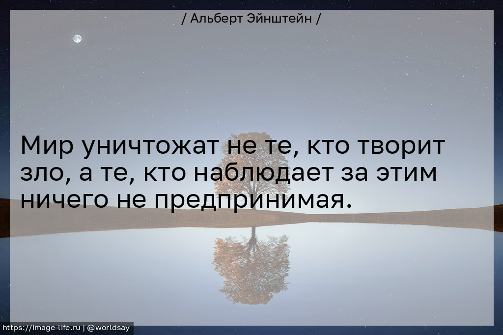 Мир уничтожат не те, кто творит зло, а те, кто наблюдает за этим ничего не предпринимая.